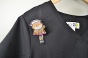 こちらのIDバッジリールは可愛らしいキャラクターのデザインで、先端にスナップバッジホルダーが付いた伸縮式コードとなっております。