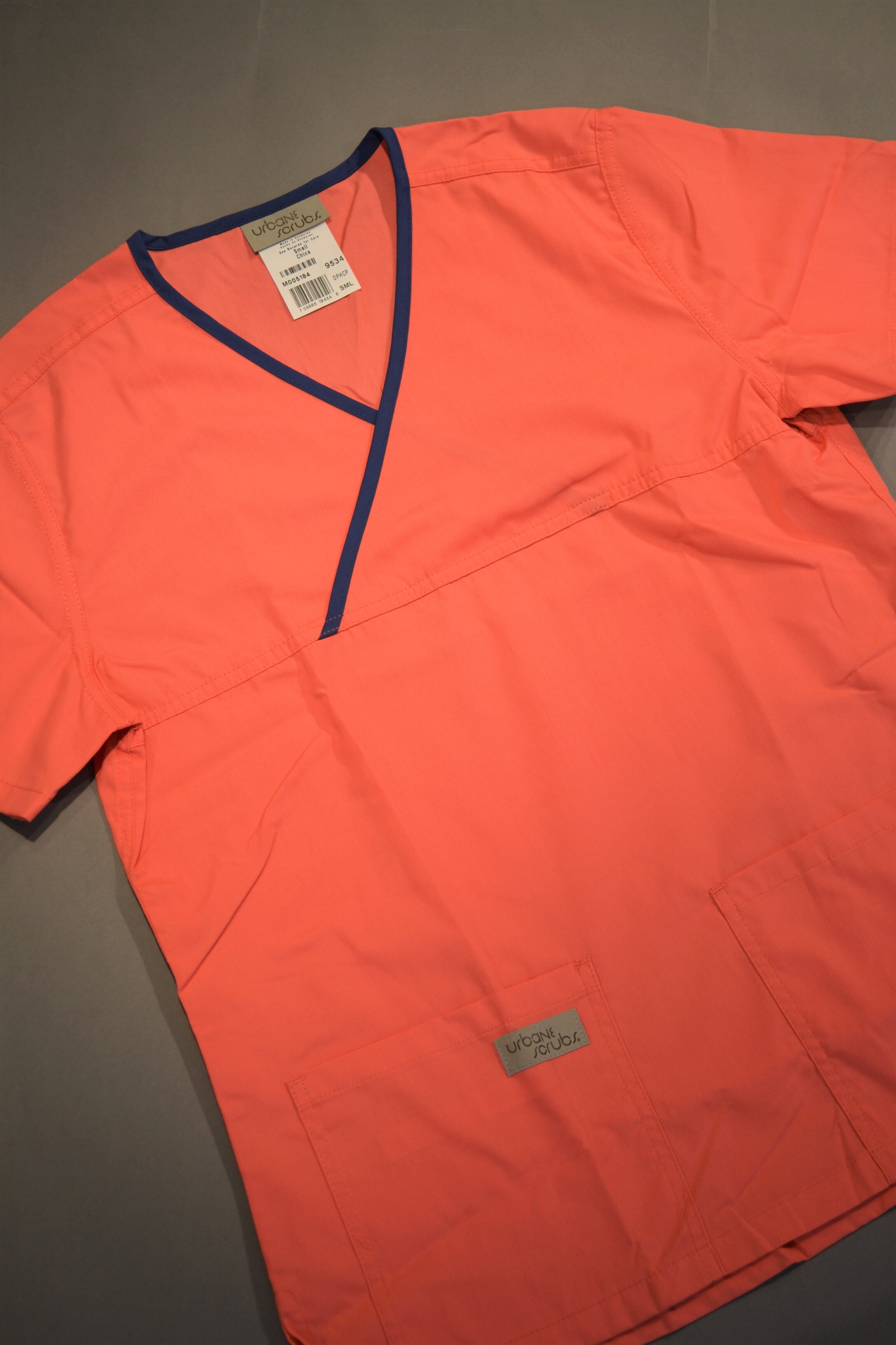首回りから胸元にかけてのコントラストのラインが美しいスクラブです。
