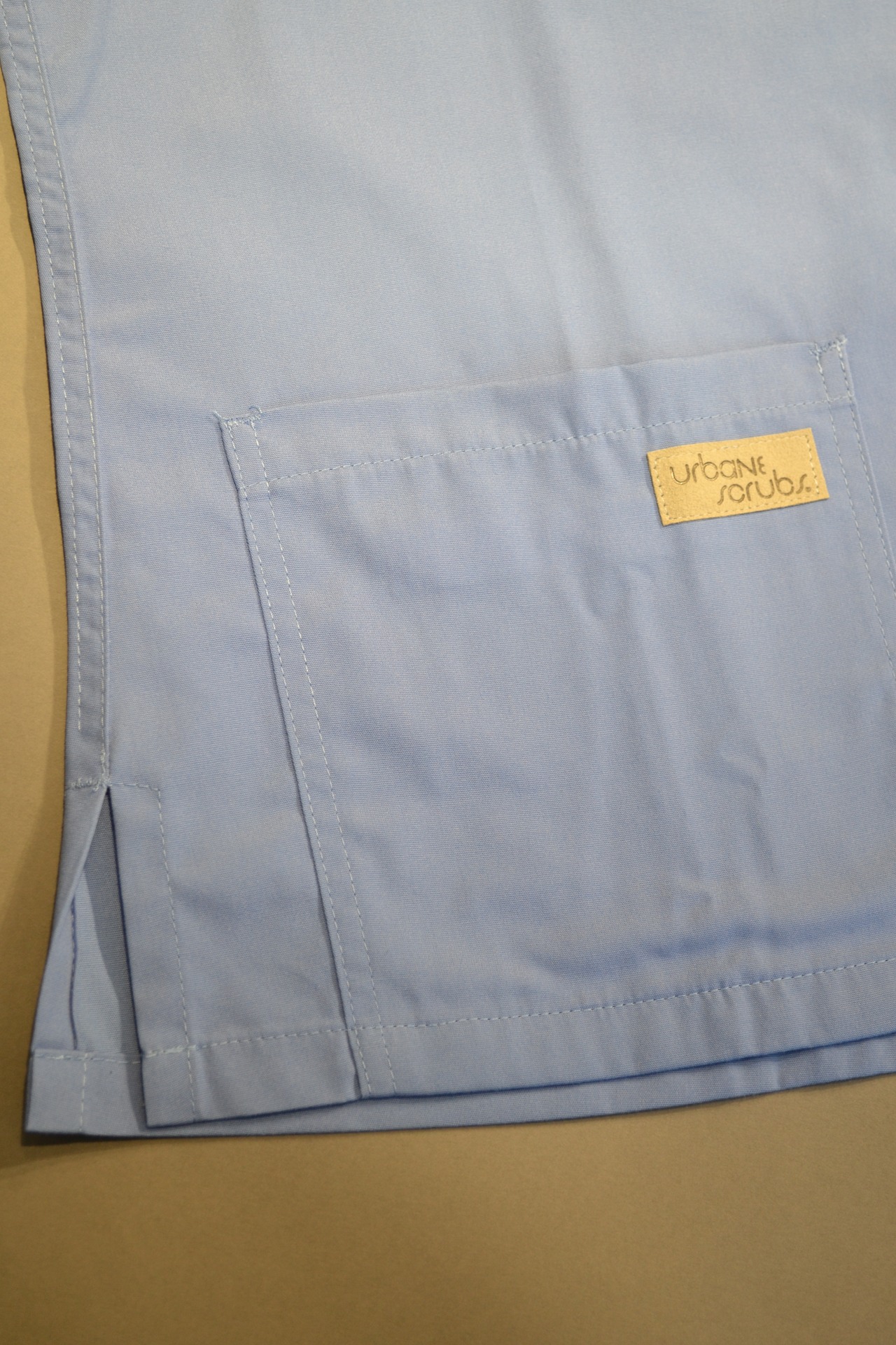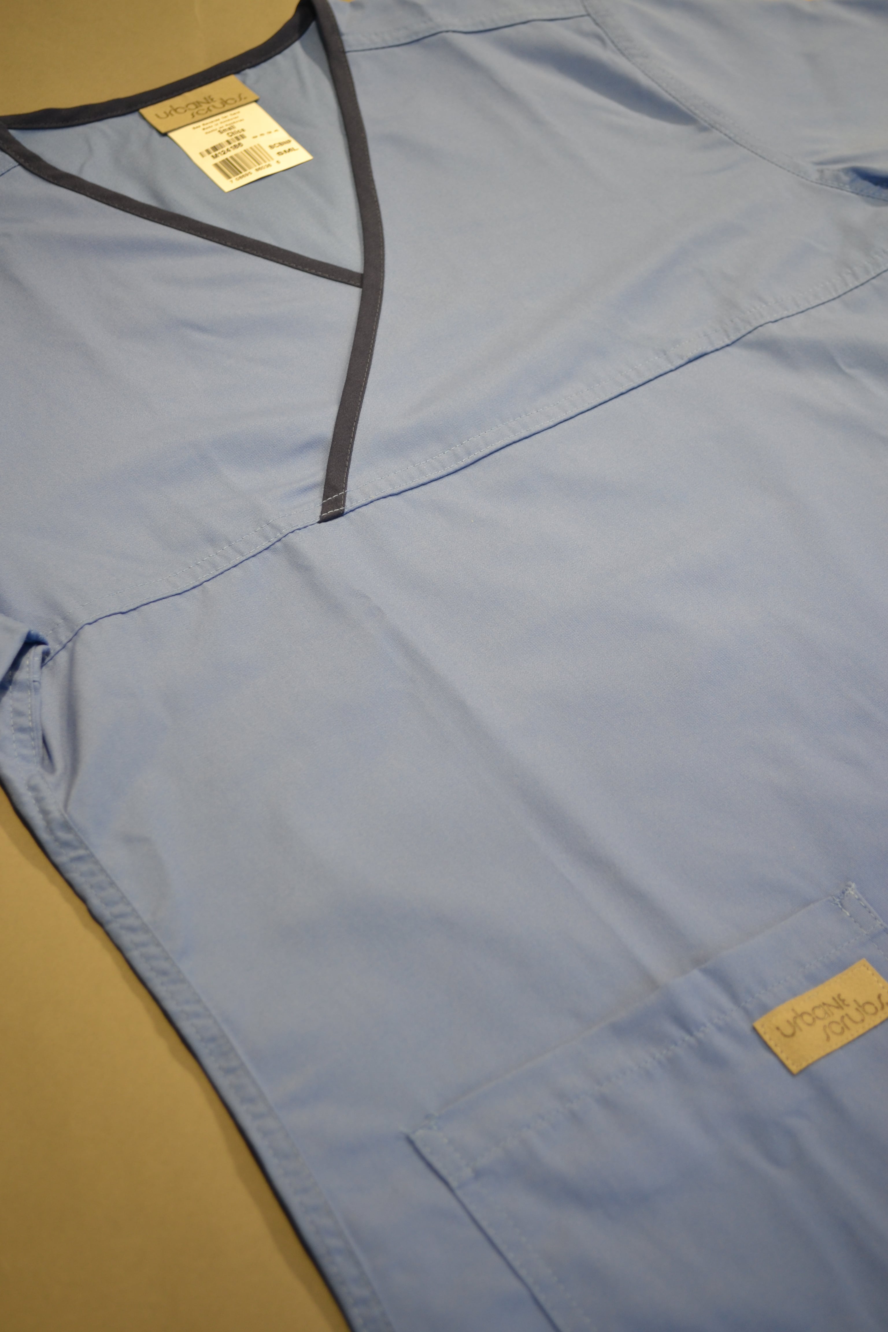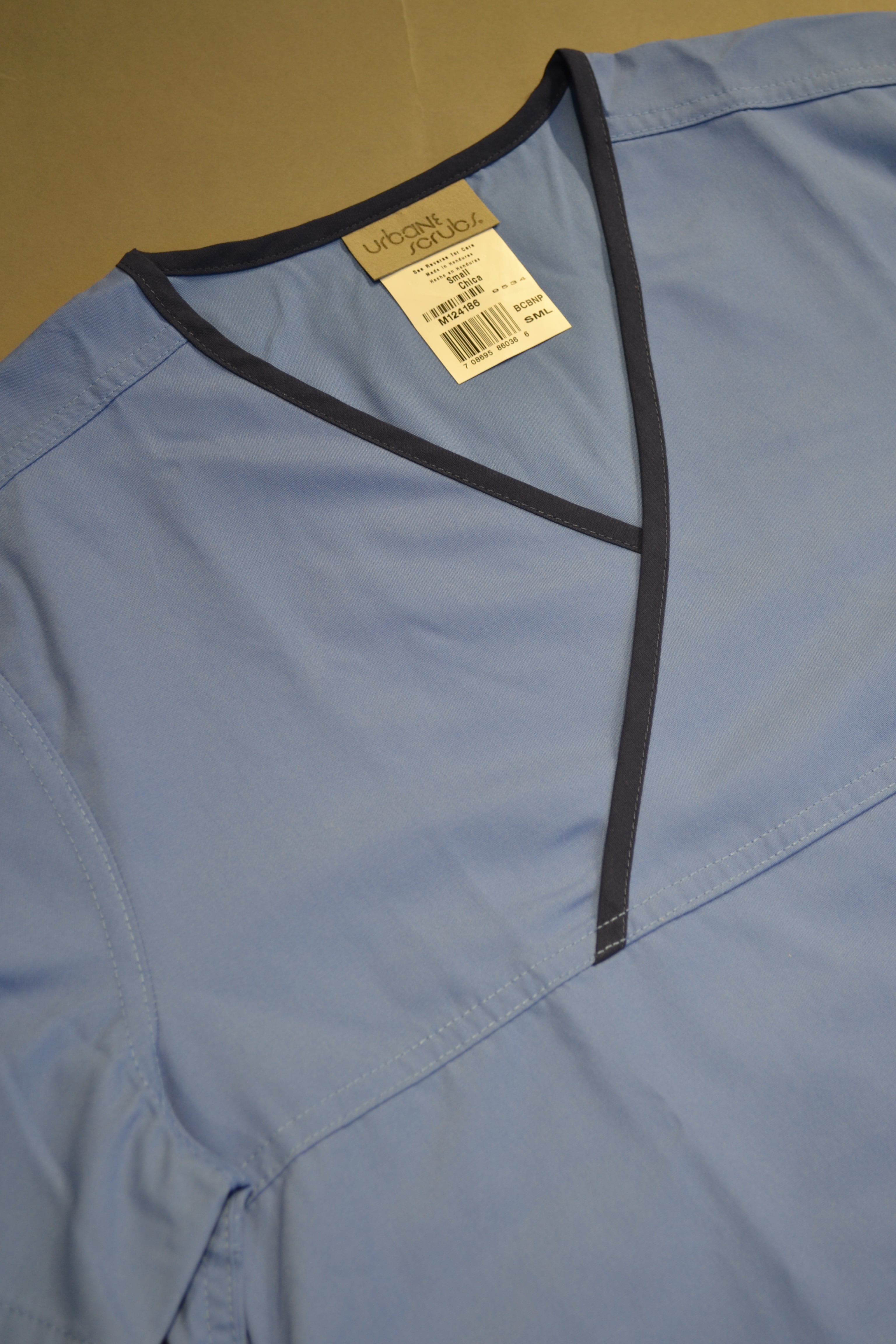 首回りから胸元にかけてのコントラストのラインが美しいスクラブです。