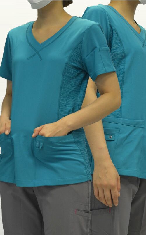 襟元と両脇に吸汗速乾性に優れたクイッククール・ニットパネルを用い、