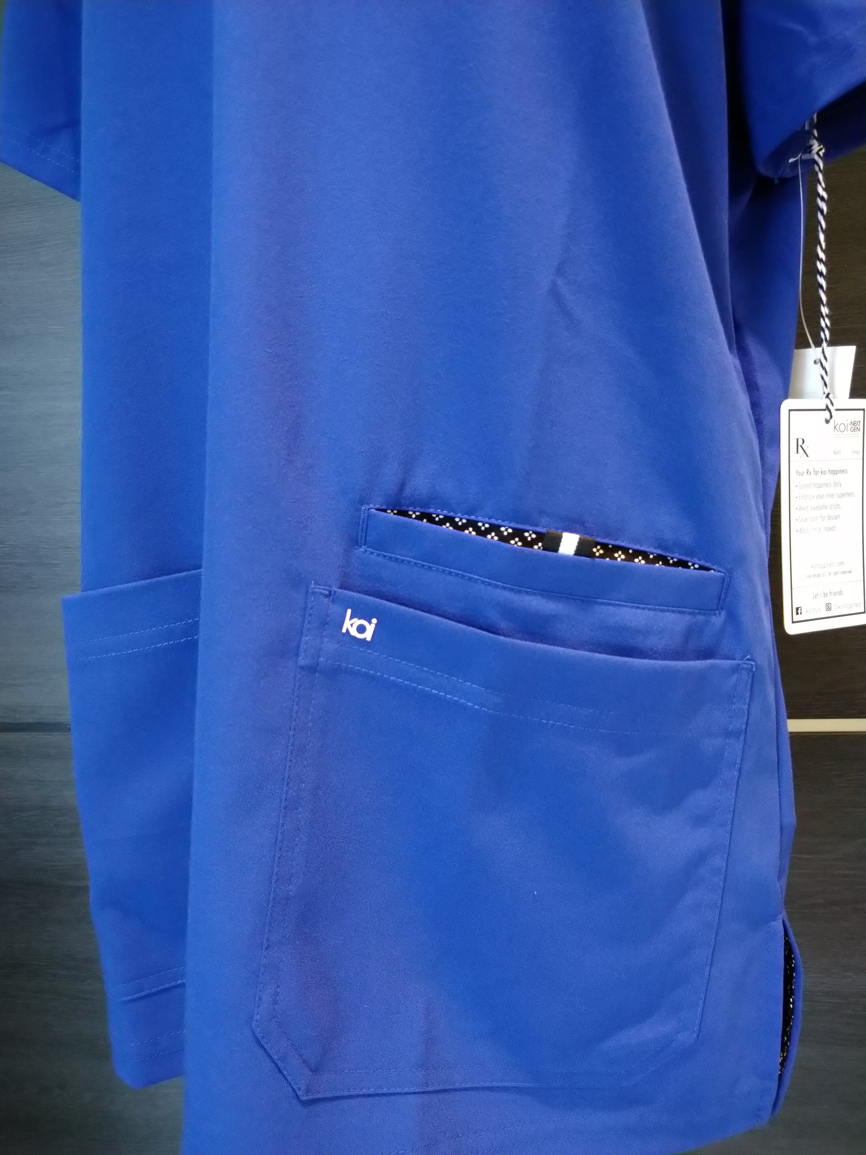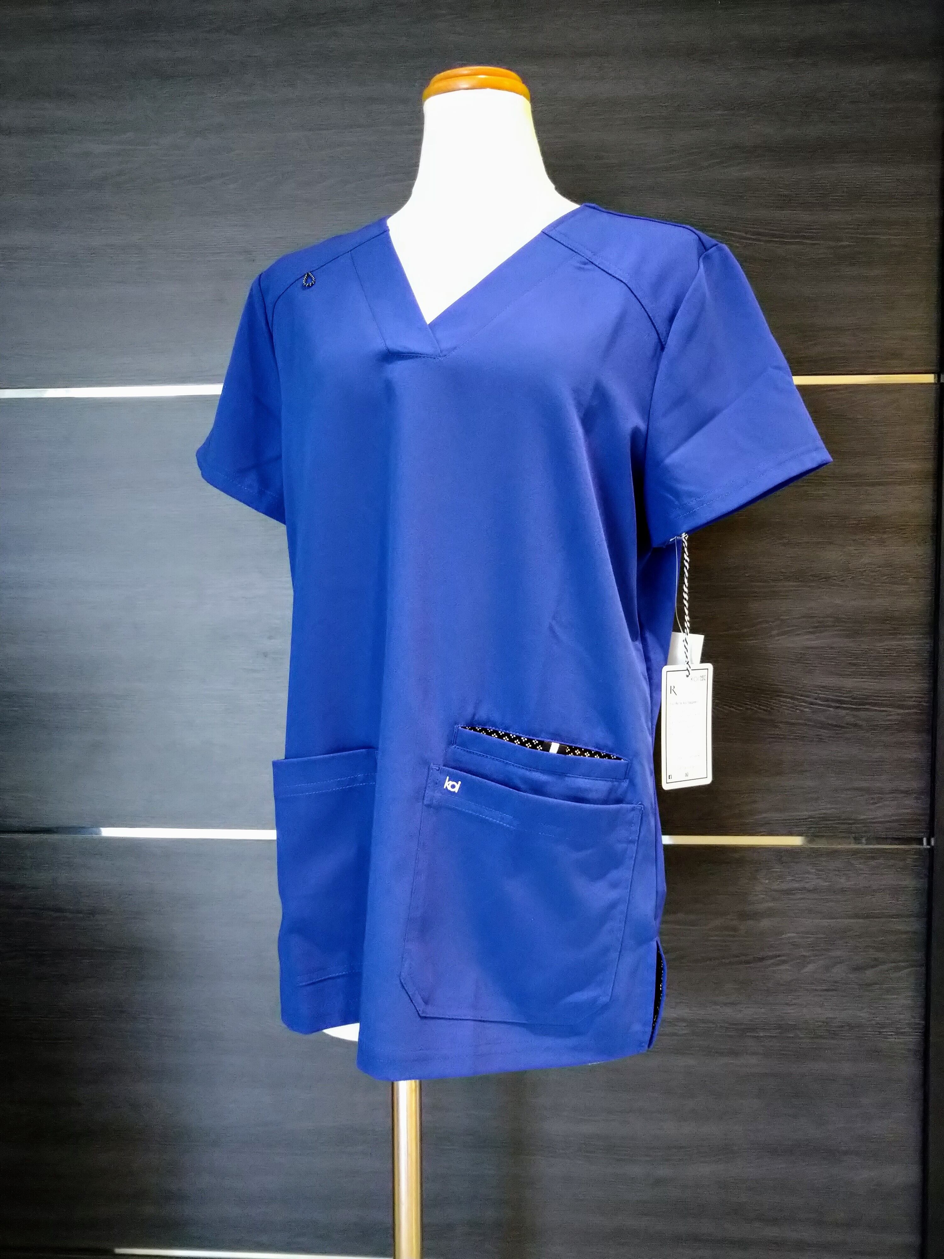 4方向に伸びるストレッチ性のある3ポケットスクラブです。