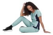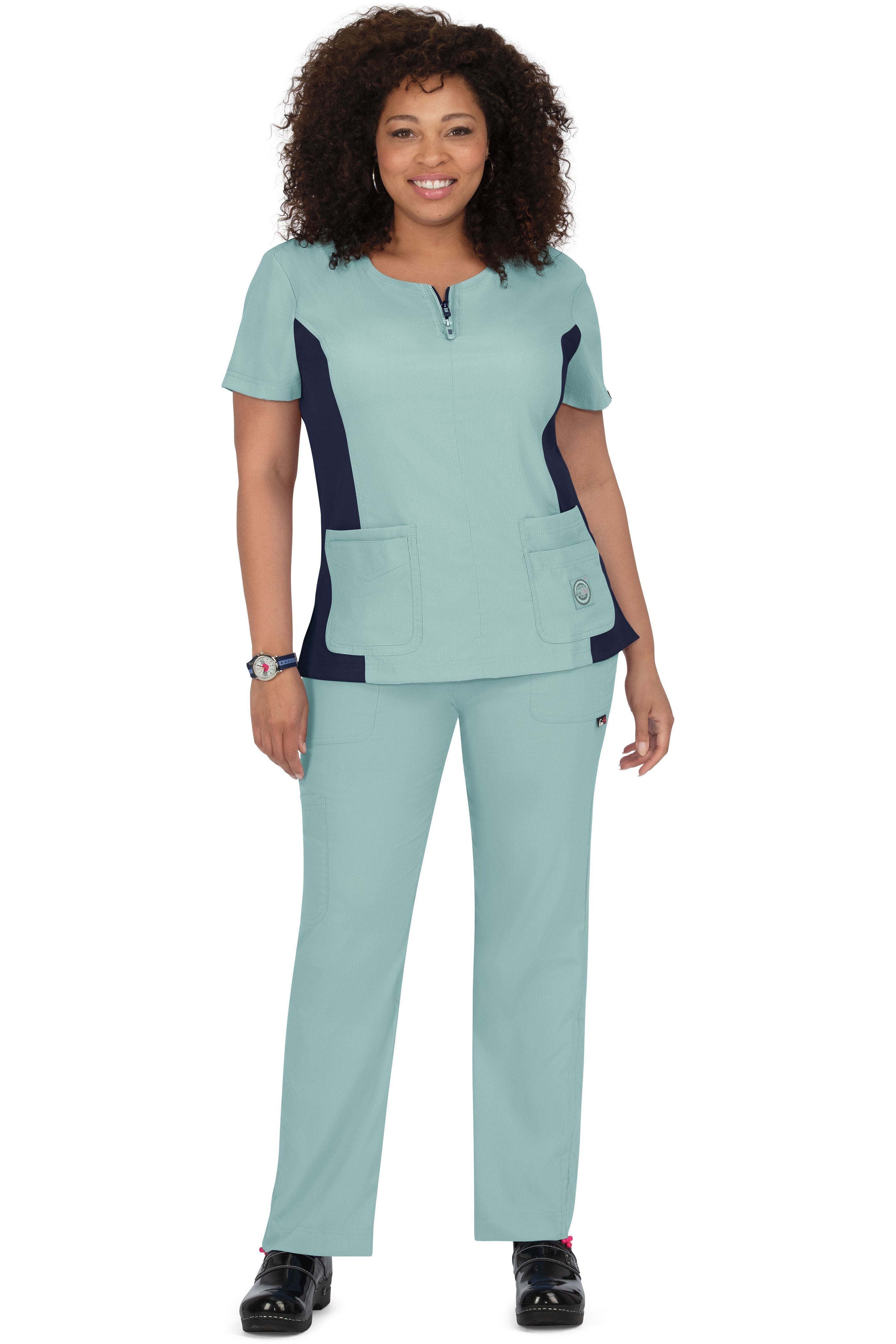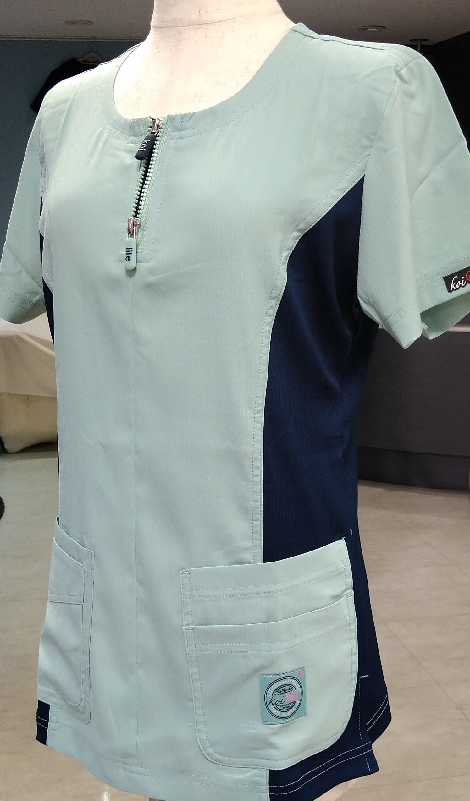 バイカラーと首元のダブルジッパーがアクセントになったスクラブです。